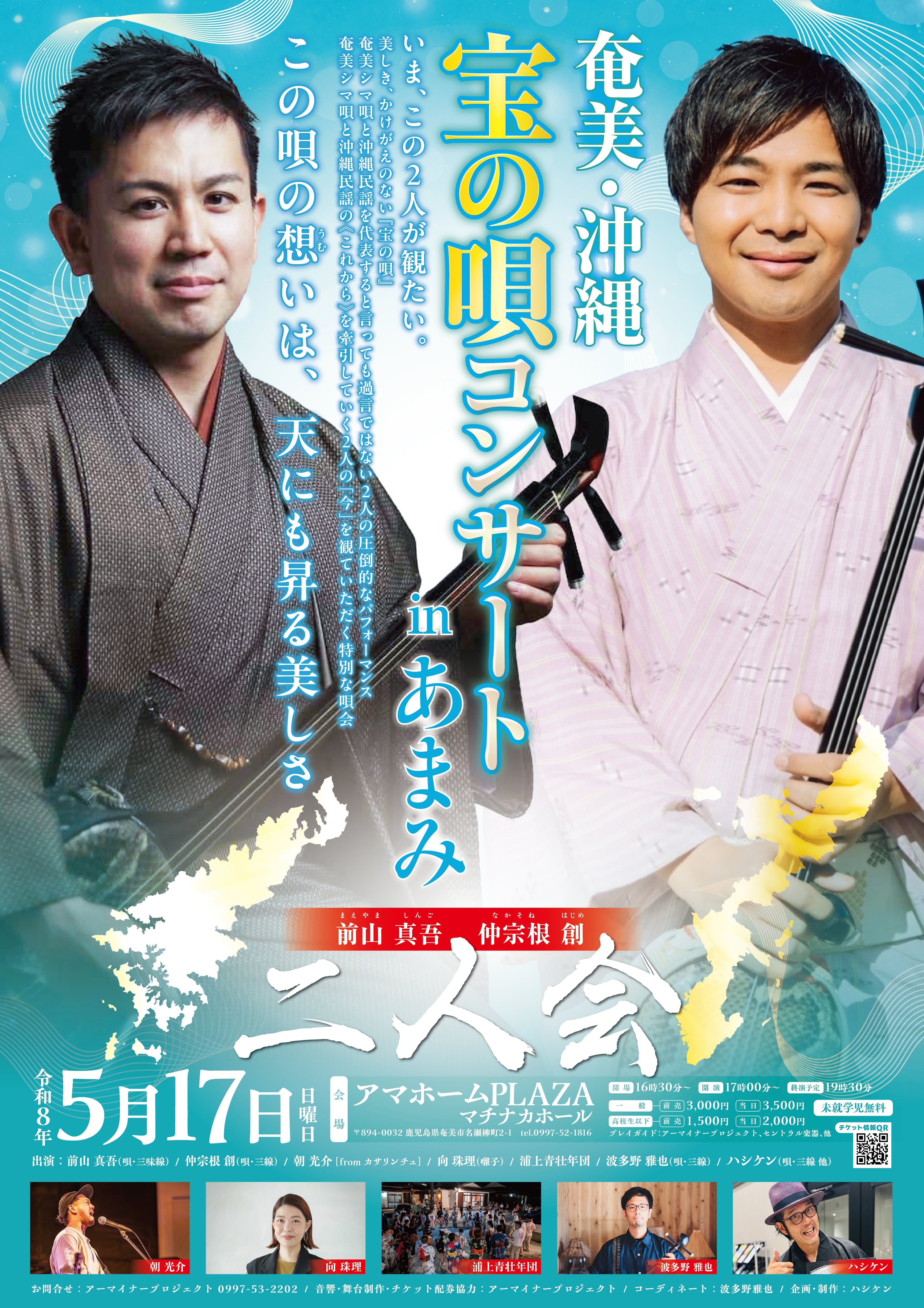 「代表する」と言っても過言ではない2人の圧倒的なパフォーマンス奄美シマ唄と沖縄民謡の<これから>を牽引していく2人の「今」を観ていただく特別な唄会